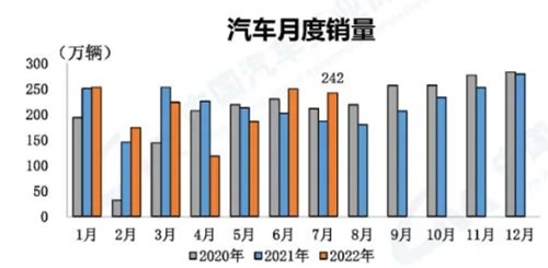 ![]() 昨日(8月11日),中國汽車工業協會(“中汽協”)在北京舉行汽車行業經濟運行信息發布會。2022年7月,汽車產銷同比繼續保持較快增長,汽車產銷分別完成245.5萬輛和242萬輛,同比分別增長31.5%和29.7%。其中,新能源汽車產銷分別完成61.7萬輛和59.3萬輛,同比均增長1.2倍。 中汽協表示,在國家實施各項經濟政策后,汽車產業得到穩步增長。7月,汽車行業PMI高于52%,好于制造業總體,連續兩個月保持擴張,產銷持續恢復。7月汽車產銷同比繼續保持較快增長。其中,新能源汽車產銷同比延續了快速增長勢頭,汽車出口再創歷史新高。 汽車產銷同比保持快速增長勢頭 7月,汽車產銷分別完成245.5萬輛和242萬輛,環比分別下降1.8%和3.3%,同比分別增長31.5%和29.7%。當月產銷量雖然低于上月,但為歷年同期最高值。1-7月,汽車產銷分別完成1457.1萬輛和1447.7萬輛,產量同比增長0.8%,銷量同比下降2%。