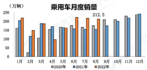 乘用車產(chǎn)銷受政策促進(jìn)效應(yīng)依舊明顯 8月,乘用車產(chǎn)銷分別完成215.7萬輛和212.5萬輛,環(huán)比分別下降2.4%和2.3%,同比分別增長(zhǎng)43.7%和36.5%。1-8月,乘用車產(chǎn)銷分別完成1480.3萬輛和1465.5萬輛,同比分別增長(zhǎng)14.7%和11.7%。
