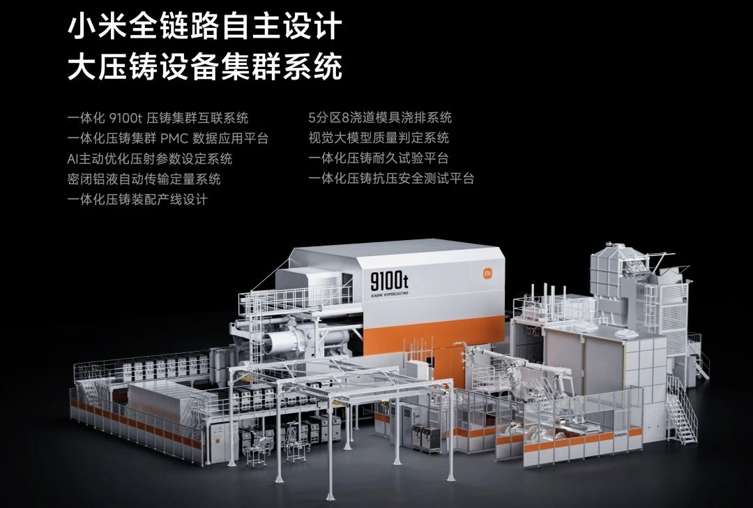 ![]() 全棧自研9100t大壓鑄集群 2023年12月28日下午,在小米汽車技術發布會上,小米創始人雷軍介紹了小米汽車的五大核心技術:電驅、電池、大壓鑄、智能座艙、智能駕駛。在大壓鑄方面,雷軍介紹了小米“超級大壓鑄”的裝備、材料及工藝。 2020年,特斯拉開啟了大壓鑄時代,在特斯拉上海工廠率先實現6000噸大壓鑄量產,將70個零件整合成了一個。 雷軍表示,大壓鑄的確是趨勢,效率特別高,但是投資大,難度高,而且成本比傳統工藝更是貴上不少。思考了很久,小米汽車還是下決心自己建廠自己研發。