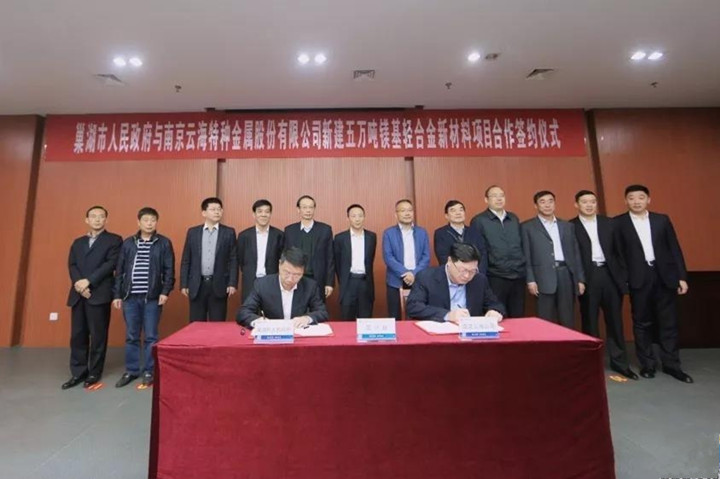 ![]() 壓鑄周刊(2017年10月25日 安徽巢湖)10月23日,南京云海特種金屬股份有限公司(“云海金屬”)鎂基輕合金新材料項目簽約落戶安徽巢湖。項目計劃投資10億元,擬在巢湖居巢經開區北區(夏閣園區)投資新建5萬噸鎂基輕合金新材料生產基地。 據了解,巢湖鎂基輕合金新材料項目,是云海金屬在巢湖全資子公司巢湖云海鎂業公司一期工程建設投產后,再次追加投資新建的項目,總投資10億元,總建筑面積15萬平方米,主要建設生產、加工、辦公及附屬生活等設施。項目達產后,預計新增銷售收入12億元,與原有產能合并后年銷售收入25億元,項目正式開工后18個月內完成全部固定資產投資。