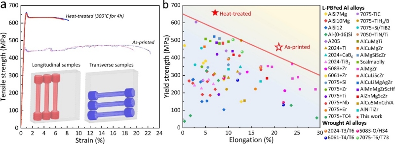 ![]() 近日,南方科技大學機械與能源工程系講席教授朱強團隊與香港城市大學呂堅院士團隊、北京科技大學毛新平院士團隊、澳大利亞昆士蘭大學張明星教授團隊合作,在增材制造(3D打?。╀X合金領域取得新進展,相關成果以“Additively manufactured fine-grained ultrahigh-strength bulk aluminum alloys with nanostructured strengthening defects”為題發表在學術期刊 Materials Today 上。 該研究表明通過激光粉末床熔融(L-PBF)增材制造技術,可促使鋁合金同時具備細化的多模態晶粒異質結構與納米尺度的面缺陷(如層錯,孿晶界,9R相),以此優化材料力學性能,使其屈服強度達到迄今為止幾乎所有L-PBF生產的鋁合金中最高水平(~656 MPa),并同時具有可觀的延伸率(~7.2%)。該類高強韌鋁合金的成功研發為用于先進結構應用的高性能鋁合金部件提供了新的范式,有利于輕量化設計和減少碳足跡。 金屬增材制造技術作為一種先進的材料成形工藝,為復雜結構零部件設計與成型及高性能合金的設計與開發提供了新的機遇。在雙碳約束與加快發展新質生產力戰略的背景下,市場對產品輕質高強化的需求與標準不斷提高。因此,具有優異力學性能的輕質鋁合金復雜結構零部件受到了航空航天、汽車工業和國防工業等領域的廣泛關注。目前,大多數鋁合金的金屬增材制造局限于近共晶的鋁硅成分(如AlSi10Mg),雖然這些成分容易加工,但力學性能較差。而具有最佳性能的沉淀硬化鋁合金(如2xxx或7xxx系列)由于凝固溫度區間大,在打印過程的極端凝固條件下極易發生熱裂現象,從而難以制備。朱強團隊與其他團隊之前的研究均表明,通過原位形成或外部引入與鋁基體晶格匹配的異質形核顆粒,和/或含有高生長限制因子(即高Q值)的有效溶質,可以在打印過程中引發顯著的晶粒細化與消除裂紋。然而,這些鋁合金在強度和延展性之間難以實現令人滿意的平衡,對打印鋁合金的更廣泛的商業部署與工業應用帶來了挑戰。 近期,材料學界在開發高性能金屬材料取得的突破揭示了引入納米級強化面缺陷(如孿晶邊界,層錯,9R相)以提高力學性能的變革潛力。以納米孿晶為例,其作為一種特殊的微觀組織可為金屬材料帶來諸如高強度、高穩定性等優異的性能,一直是行業內的研究熱點。但迄今為止,相關研究大多局限于具有中、低層錯能的金屬材料(如銅和銀等),在具有高層錯能的金屬(如鋁)中則很難形成納米孿晶組織。 對于工業上廣泛使用的鋁及鋁合金而言,如果能形成這些納米級的面缺陷進行強化,則有望大幅度提高其強度,從而擴寬其應用范圍。通常而言,將鋁與低層錯能金屬(如鐵,銀,鎂等)復合,可以在超快速凝固條件下(如物理氣相沉積)形成具有納米孿晶的鋁基薄膜。這種制備方法工藝復雜、條件嚴苛,同時需要利用低層錯能金屬作為孿晶源以誘發孿晶生長且僅能制備薄膜材料。對于塊狀材料而言,目前主要通過嚴重塑性變形來引入這些納米尺度的面缺陷進行強化,其實際應用則受到限制。因此,如何能在更加簡單的條件下直接制備出納米面缺陷強化的塊狀鋁材料仍是國際性難題,相關研究具有重要的理論意義與實用價值。