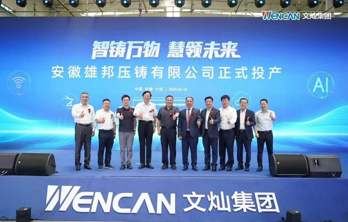 ![]() 隆源股份北交所IPO申請獲受理 6月18日,寧波隆源股份有限公司(簡稱“隆源股份”)在北交所IPO申請獲受理。隆源股份從事鋁合金精密壓鑄件的研發(fā)、生產(chǎn)與銷售。財報數(shù)據(jù)顯示,2024年,公司營業(yè)收入8.69億元,同比增長24.23%;凈利潤為1.28億元,同比增長2%。 文燦集團(安徽)壓鑄生產(chǎn)基地正式投產(chǎn) 2025年6月18日上午,文燦集團旗下安徽雄邦壓鑄有限公司投產(chǎn)儀式在安徽省六安經(jīng)濟技術(shù)開發(fā)區(qū)盛大舉行。據(jù)了解,安徽雄邦壓鑄有限公司占地面積超過13.5萬平方米,建筑面積高達11.6萬平方米,是文燦集團單體建筑面積最大的工廠。該工廠具備強大的生產(chǎn)能力,可布局超過28套大型智慧壓鑄單元、250臺加工中心、200臺高端機器人以及50條全自動生產(chǎn)線,將成為文燦集團自動化、智能化及數(shù)字化程度最高的智慧工廠。