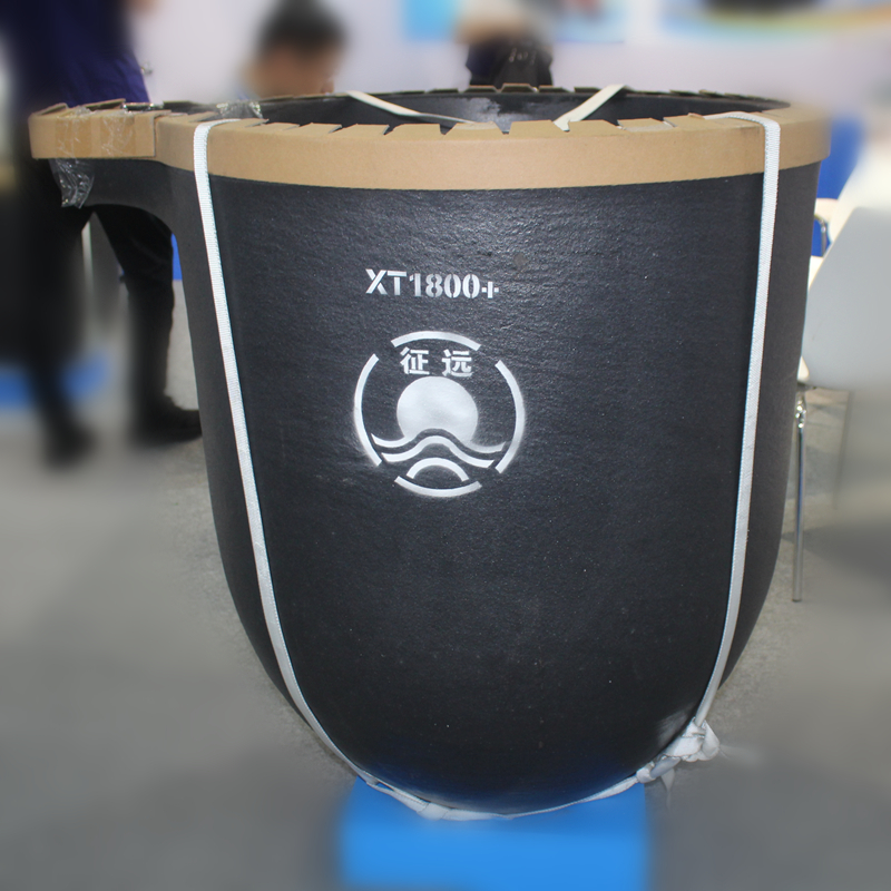 1800#帶嘴坩堝 據悉,征遠碳化硅石墨坩堝具有耐高溫、導熱快、抗急冷急熱性能好,耐酸堿腐蝕的特點,廣泛應用于有色金屬及合金熔煉行業。其使用原材料傳導熱速度快,可大大縮短熔煉時間,節約燃料,節能環保;相比較普通黏土坩堝,可大幅延長使用壽命,節約成本;采用高純原材料,科學、先進配方,可有效抵抗酸堿熔渣的高溫侵蝕。