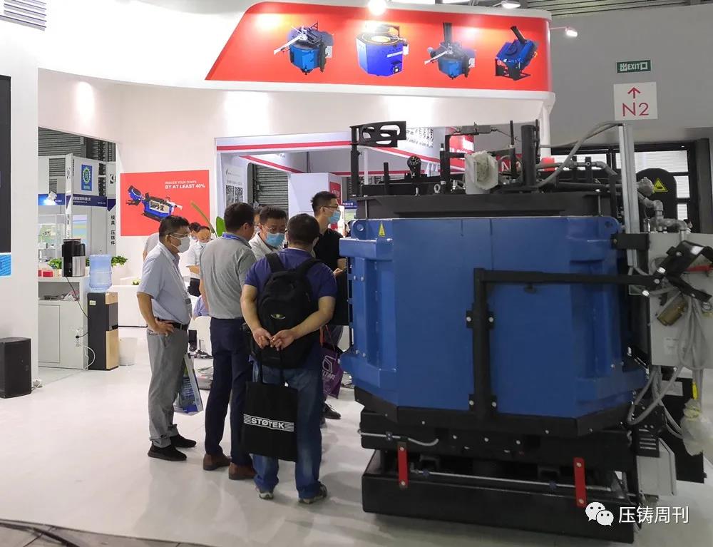 技術(shù)人員為專業(yè)買家介紹DTI系列鋁合金定量爐 三天的展會,STØTEK中國位于N1館N1D31的展臺,吸引了絡(luò)繹不絕的專業(yè)觀眾和買家。無論是實物展示的DTI系列浸入式加熱鋁合金定量爐,還是SMGT塔式熔化爐,均受到專業(yè)觀眾追捧。受疫情影響,壓鑄行業(yè)和企業(yè)受到不同程度沖擊,加速了行業(yè)轉(zhuǎn)型升級,高效率、高品質(zhì)的生產(chǎn)裝備受到追捧。STØTEK高性能熔煉設(shè)備自然受到壓鑄廠用戶的青睞。 |