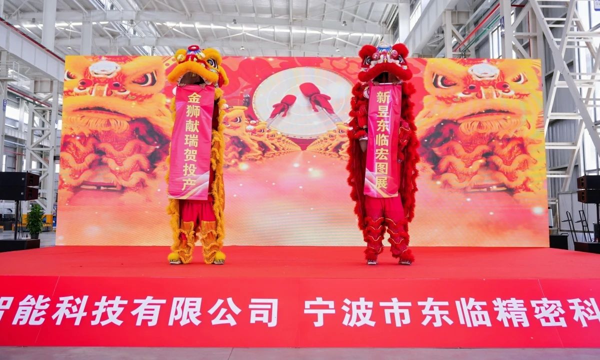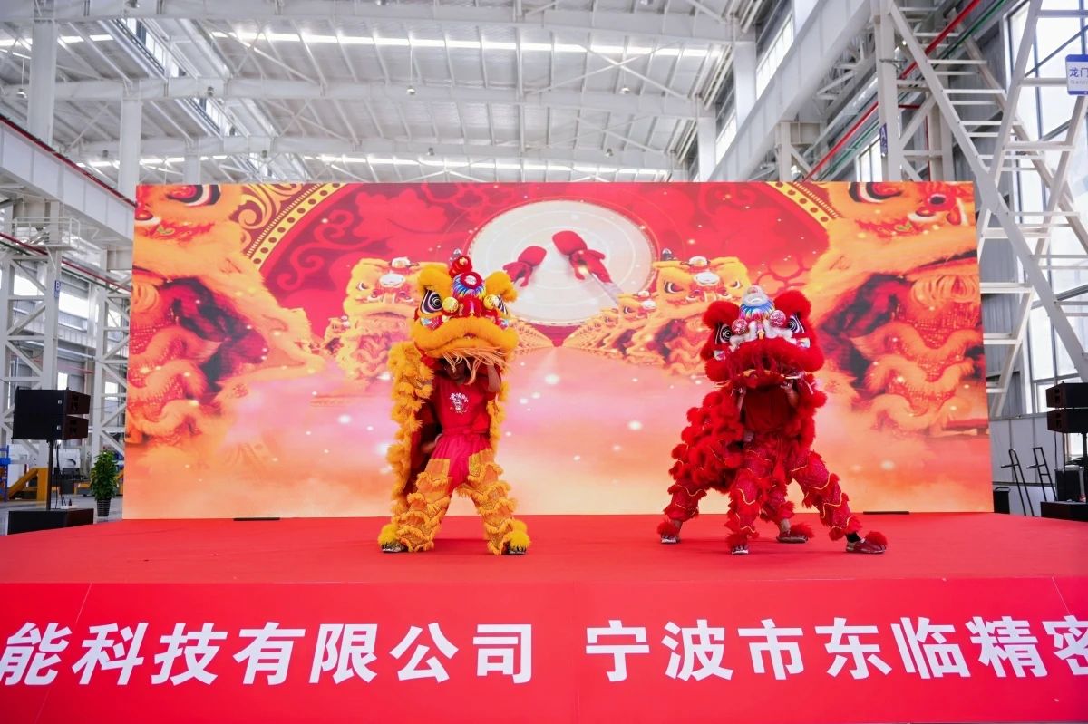 最后,現(xiàn)場舉行了精彩紛呈的舞獅表演和采青儀式。新昱科技總經(jīng)理王蘇華與公司股東趙立沖先生共同上臺為醒獅點睛,這一傳統(tǒng)儀式寓意著企業(yè)興旺發(fā)達、蒸蒸日上。隨后,銷售總監(jiān)劉傳臺先生采摘青菜,寓意著財富落地生根。禮畢,醒獅口吐對聯(lián):“金獅獻瑞賀投產(chǎn),新昱東臨宏圖展!”將現(xiàn)場氣氛推向高潮,表達了對新昱科技和東臨精密未來發(fā)展的美好祝愿。