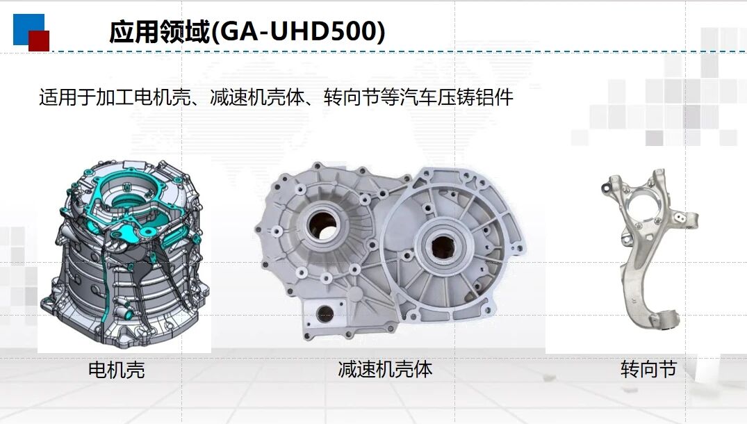 高速高精臥式加工中心 格力高速高精臥式加工中心 GA-UHD500,兼具更強(qiáng)扭矩、更大載重與更小占地的優(yōu)勢,相較同類設(shè)備占地減少 20%、加工效率提升 30%,適用于精密加工電機(jī)殼、減速機(jī)殼體、轉(zhuǎn)向節(jié)等汽車壓鑄零部件。