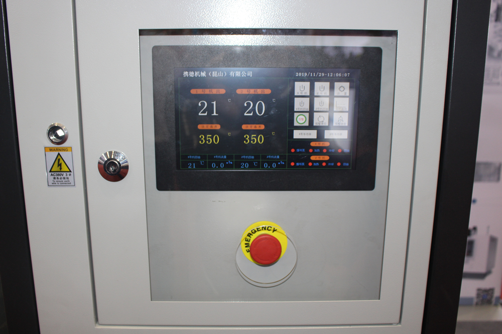 控制箱更直觀簡便的大屏幕操作系統(tǒng) 另外,其新一代流道設計,采用德國Speck無軸封磁力泵,杜絕泄露,坐高溫度350℃;泵浦前置,網罩堵塞更易察覺,降低電機壽命短問題;電控箱防水防塵導流設計,電氣件壽命更長;待機、運行、報警三色LED報警大燈,及時提醒;一鍵關機自動冷卻功能,一鍵自動回油功能;雙開門設計,高低壓隔離,防止數據誤調;機器尺寸更小,減少占地空間。 值得一提的是,順應“工業(yè)4.0”大潮,昆山攜德還結合溫控設備開發(fā)出溫控管理系統(tǒng),實現智能物聯(lián),與壓鑄機信號對接,智能終端遠程操控,助推企業(yè)用戶自動化、智能化、數字化管理。 |