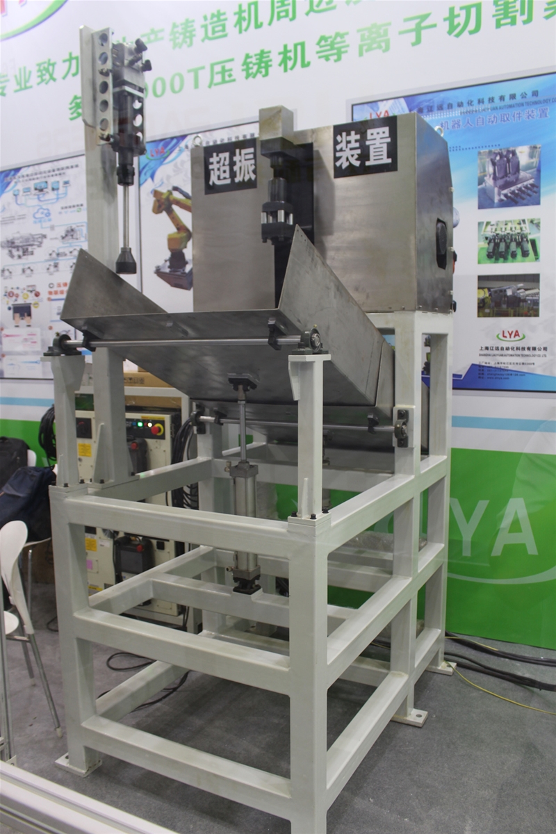 遼遠超振裝置 據介紹,遼遠自動化超振裝置是一種壓鑄件進澆口共振破斷分離裝置,通過變頻電機帶動偏心軸,再通過軸連接法蘭的連軸裝置產生內部振動,實現產品與澆口的分離。該裝置設定了2個工位,具有去料柄效率高、適應范圍廣、占地少、頻率可調,可集中收集料柄,成本低的特點。裝置不用切邊模,并節(jié)省了油壓切邊設備和切邊模具的投入成本。