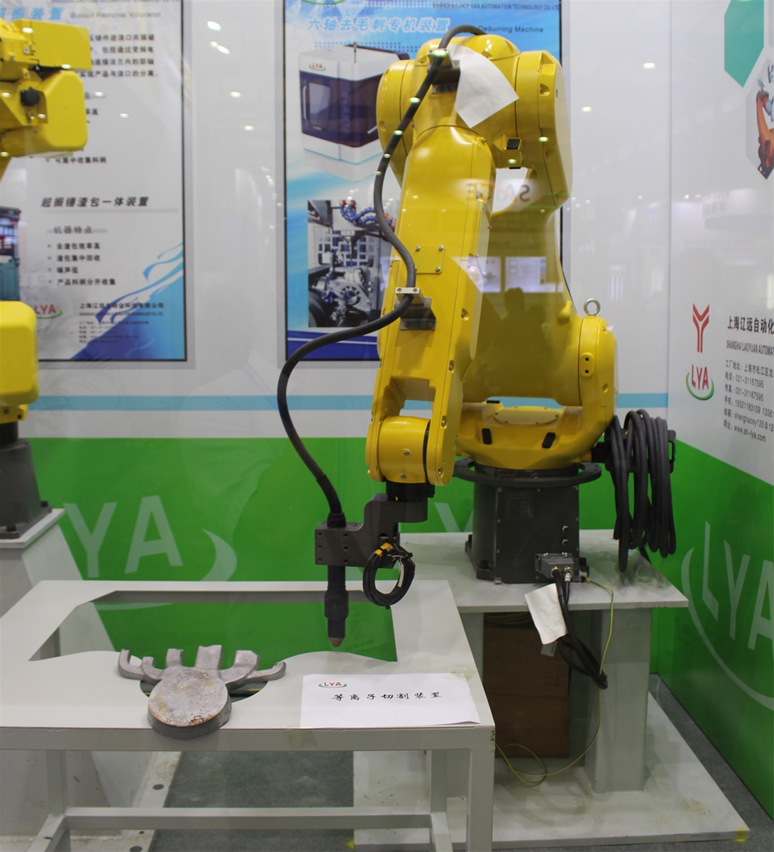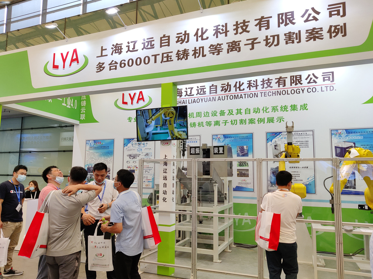 遼遠六軸等離子切割裝置 遼遠自動化展示的六軸取件機器人的抓手采用了內制氣缸試樣設計,具有重量輕、負載更小,壽命更長的優(yōu)點,同時也可根據客戶要求定制取件、鑲件一體抓手。六軸等離子切割裝置主要針對大型壓鑄件切割去料柄,具有循環(huán)時間快、切割精準等優(yōu)點。對于大型壓鑄件容易變形的缺陷以及使用油壓切邊機進行切邊模產生的高成本,等離子切割裝置有很好的成本優(yōu)勢。同時,還可根據客戶的需要配置切割房及防爆除塵功能,使生產更安全。 隨著新能源汽車鑄件大型一體化以及配套設備超大型壓鑄機的市場化應用,壓鑄行業(yè)設備商及配套商也迎來了發(fā)展機遇。遼遠自動化總經理胡培民先生表示:“超大型壓鑄機的應用實現了大型鑄件生產,公司今后也將開發(fā)出超大型壓鑄機(6000T以上)配套的設備,在抓住機遇的同時也不斷提升自動化技術研發(fā)能力。另外,公司還會著力于靜電噴涂和微量噴涂、針對以上噴涂對模具的溫度控制較高,我們開發(fā)了模具冷卻控制系統,能精確控制模具溫度,形成最佳脫模效果。同時針對6000T開發(fā)了料柄抓手和產品取件抓手。”