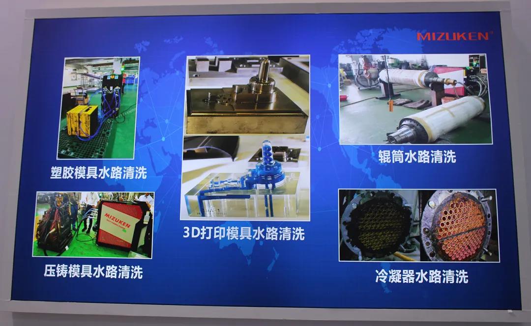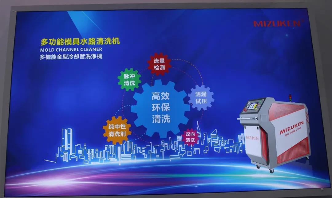 廣東水研本次在展會上展示的多功能模具水路清洗機,在原有產品的基礎上進行了優化升級。優化后的清洗機流量控制更好,精度更高,持續脈沖爆破(純物理方式)的速度比之前提升了3倍(達到1次連續60 S),大大提高了清洗能力,更起到提升產品品質、提高生產效率以及降低生產成本的效果。 另外,廣東水研還推介了公司新研制的專利產品——純中性清洗劑,它除銹效果好、速度快,與市面上其他的清洗劑相比更環保,完全不腐蝕模具,對多年未清洗的模具水路在除銹方面有意想不到的效果。