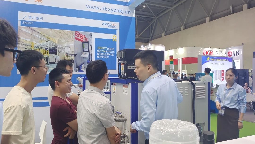 新昱科技展臺 據介紹,新昱科技歷時三年成功開發出CTM大型高溫水路控制系統。單臺CTM可替代溫控組單元中的十多臺水溫機,使得超大型壓鑄島溫控組單元更加節省占地空間、節省成本、節能降耗以及精準溫控。