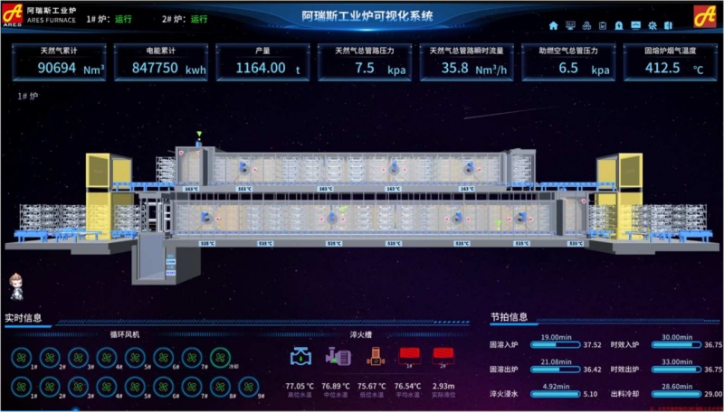 阿瑞斯工業爐開發的可視化&數字孿生系統 阿瑞斯工業爐還獨立開發了可視化&數字孿生系統,這一系統獨立于設備操作系統之外,為生產管理者提供了設備狀態分析、全面的生產數據統計和能耗統計,從而更深入地挖掘設備潛能,并實施成本節約措施。此外,軟件內嵌的數學模型還能為新工藝的開發提供有力支持。 通過這些技術創新和優化設計,阿瑞斯工業爐不僅提升了設備性能,還進一步鞏固了其在鋁合金熱處理行業的領先地位。 備受矚目的“2024上海國際壓鑄展”將于7月10-12日在上海新國際博覽中心盛大舉行。屆時,阿瑞斯工業爐將力推鋁合金鑄件熱處理爐創新解決方案。展位號:N2C26。 聯系方式