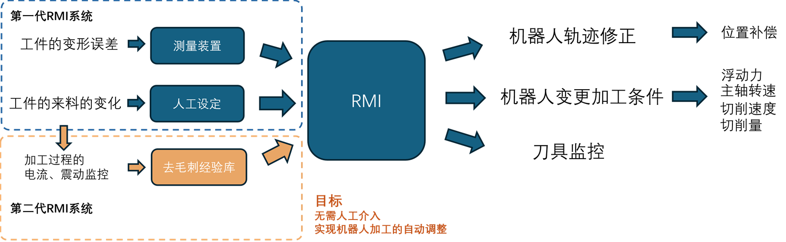 RMI 安江恒憲社長介紹道:“針對大型壓鑄件尺寸大、毛刺位置多、節拍要求短、毛刺分布廣以及產品變形大無法精準定位的問題,為應對大型壓鑄件毛坯工件的材質多樣性、工藝復雜性、來料不一致性,廣州太威致力于研究開發具有自適應和高度智能化的機器人去毛刺RMI控制系統。RMI軟件系統是針對機器人自動去毛刺的智能加工系統,旨在減少甚至無需人工介入即可自動適應工件(壓鑄件)的差異,實現自適應加工。” 據了解,第一代RMI軟件系統已經實現了在可視化界面上直接調整加工工藝條件的功能,包括主軸浮動壓力、主軸轉速、機器人加工速度、機器人加工切入量等參數。可視化的界面方便了加工參數的調整,無需專業的機器人工程師,一般作業工人也能根據不同的工件情況輕松調整,而且調整過程無需停機,實現了在線式調試。RMI系統使得設備操作更加智能化,生產更加便利。 目前,正在開發中的第二代RMI系統目標則是實現自動調整,真正實現智能化去毛刺。通過增加激光測距傳感器、圖像傳感器、加工電流傳感器、加工震動傳感器等,對工件和加工過程進行監控,RMI系統將能夠根據實際工件的數據自主控制機器人加工條件。RMI系統開創了AI智能切削加工的先河,能夠應對毛坯工件的外觀尺寸變形、毛刺大小變化等復雜難題,實現自適應試加工(去毛刺),避免了因毛刺大小變化而導致整條自動化線停機調整的情況,減少了人工干預時間,提高了設備稼動效率。 關于廣州太威機械有限公司 廣州太威機械有限公司坐落于廣州市黃埔區云埔工業區,是一家集研發、設計、制造、銷售及服務于一體的創新型中日合資公司。TECHNO-WAVE是廣州太威的自有品牌。作為較早研究機器人去毛刺自動化和標準化設備的制造商,廣州太威已經成功開發和量產了20多個系列的去毛刺標準機,并廣泛應用于鋁鑄件、鑄鐵、鑄鋼、砂芯、注塑等材質的表面處理領域。 |