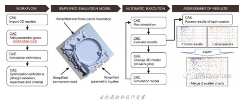 在第二步,他們在 MAGMASOFT®中定義了優化過程的評估目標和關鍵質量標準。在豐田汽車公司的這個案例中,從產品質量方面來說,最重要的目標就是要避免出現澆不足并減少鑄造卷氣現象。為了縮短準備時間和計算時間,他們根據邁格碼六步法簡化了模擬模型。