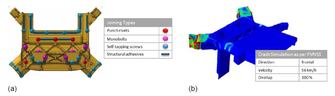圖1:結構部件“接頭”的要求:a)不同連接類型的實現;b)正面碰撞時的能量吸收和載荷傳遞