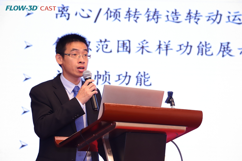亞新科(天津)汽車零部件有限公司的王連來先生 FLOW-3D中國公司的郝平先生以《FLOW-3D CAST 軟件使用技巧》,分享了FLOW-3D CAST的轉檔、轉動運動顯示、關鍵幀展示、流線顯示、曲線輸出等新功能及使用技巧,并介紹了FLOW-3D軟件在半固態壓鑄和液態壓鑄上的使用技巧。