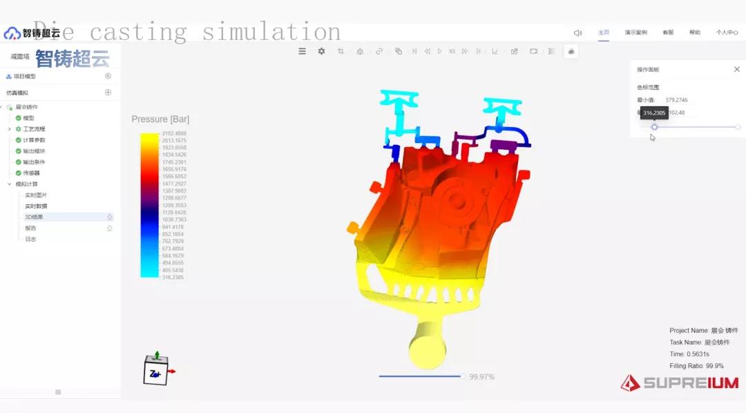 張偉博士做現場報告 在一體壓鑄技術白熱化的推動下,智能壓鑄已成為行業發展趨勢,同時也是企業加快轉型、實現高質量發展的必由之路。作為智能化的核心環節之一,企業在研發設計環節的表現,以及上下游全產業鏈在設計端的協同性程度都對產品的研發效率和行業創造力的發展有著重要影響。CAE軟件,特別是基于工業互聯網和云計算的CAE云平臺,在行業技術指標見長的當下,受到了大家越來越多的關注與認可。 由適創科技自主研發并提供全部技術支持的「SupreCAST智鑄超云」是自主CAE軟件的創新嘗試,通過云計算的模式,讓制造企業無需購置硬件和仿真軟件,可以將計算成本降低90%;另外通過底層高性能算法技術創新并依托國家超算硬件,將計算速度提升10倍以上,從計算成本和計算速度兩個維度匹配國內企業的研發設計需求。