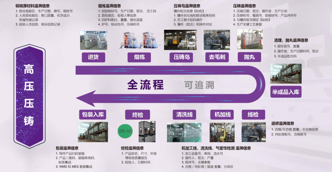 通過(guò)對(duì)產(chǎn)品的全流程追溯,出現(xiàn)質(zhì)量問(wèn)題時(shí)、用戶投訴時(shí),可以快速確定原因及相應(yīng)工序。近年來(lái)數(shù)字化工廠不斷發(fā)展,使得企業(yè)在產(chǎn)品追溯管理方面的需求成為重點(diǎn),根據(jù)企業(yè)的追溯需求,基于對(duì)壓鑄行業(yè)專業(yè)工藝?yán)斫?,利用?shù)字化讓企業(yè)實(shí)現(xiàn)內(nèi)部流程互通,實(shí)現(xiàn)智能化升級(jí)轉(zhuǎn)型,以更具成本效益和創(chuàng)新發(fā)展贏得競(jìng)爭(zhēng)力。