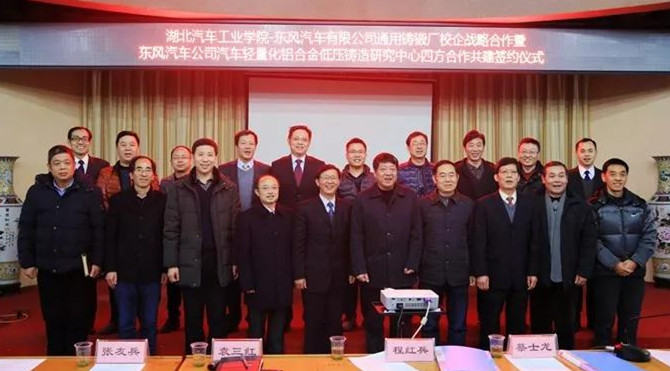 ![]() 四方簽署戰(zhàn)略合作框架協議 壓鑄周刊(2018年1月10日 湖北十堰)近日,東風公司汽車輕量化鋁合金低壓鑄造研究中心四方合作共建簽約儀式,在湖北十堰的東風汽車東風汽車有限公司通用鑄鍛廠內舉行。此舉旨在通過產學研共建,為新能源、動力總成、車身部件提供輕量化解決方案,并滿足客戶同步開發(fā)需求及輕量化“產品貨架”開發(fā)需求。 東風汽車公司通用鑄鍛廠、湖北汽車工業(yè)學院、沈陽鑄造研究所、廣東峰華卓立科技有限公司4家單位簽署企校研四方戰(zhàn)略合作框架協議。四方將利用各自優(yōu)勢,建立產學研全面合作關系,共建汽車輕量化鋁合金低壓鑄造研究中心,共同在汽車用鑄造鋁合金材料、鋁合金鑄件輕量化設計、鋁合金鑄造技術的開發(fā)與應用等方面開展全方位合作。 該低壓鑄造研究中心致力于提供鋁合金輕量化解決方案,將具備“先期開發(fā)能力”、“先進制造技術”、“精益制造能力”和“高效服務能力”四大核心能力,以及“建立汽車輕量化的技術貨架”,“提供差異化解決方案”,“構建標準化、專業(yè)化、信息化、智能化的制造系統(tǒng)”,“形成具有關鍵技術、核心技術的鋁合金零部件”等六大功能。