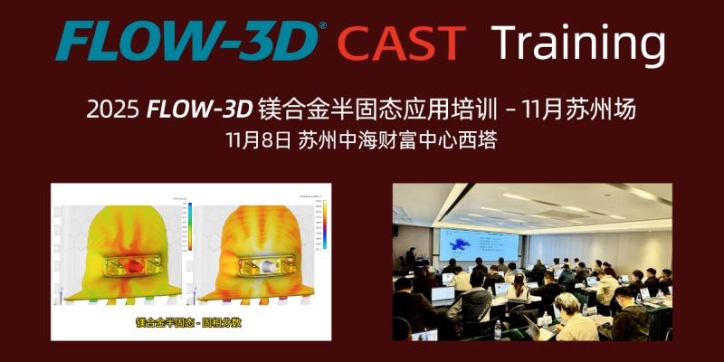 在“2025 FLOW - 3D 中國用戶大會”結束后,2025 FLOW - 3D鎂合金半固態應用培訓 – 11月蘇州場,將于11月8日在蘇州中海財富中心西塔2203室舉行。