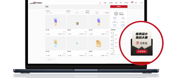 進(jìn)入智鑄超云官網(wǎng)點(diǎn)擊屏幕右側(cè)“模具設(shè)計(jì)大賽”懸浮圖標(biāo) 方式三