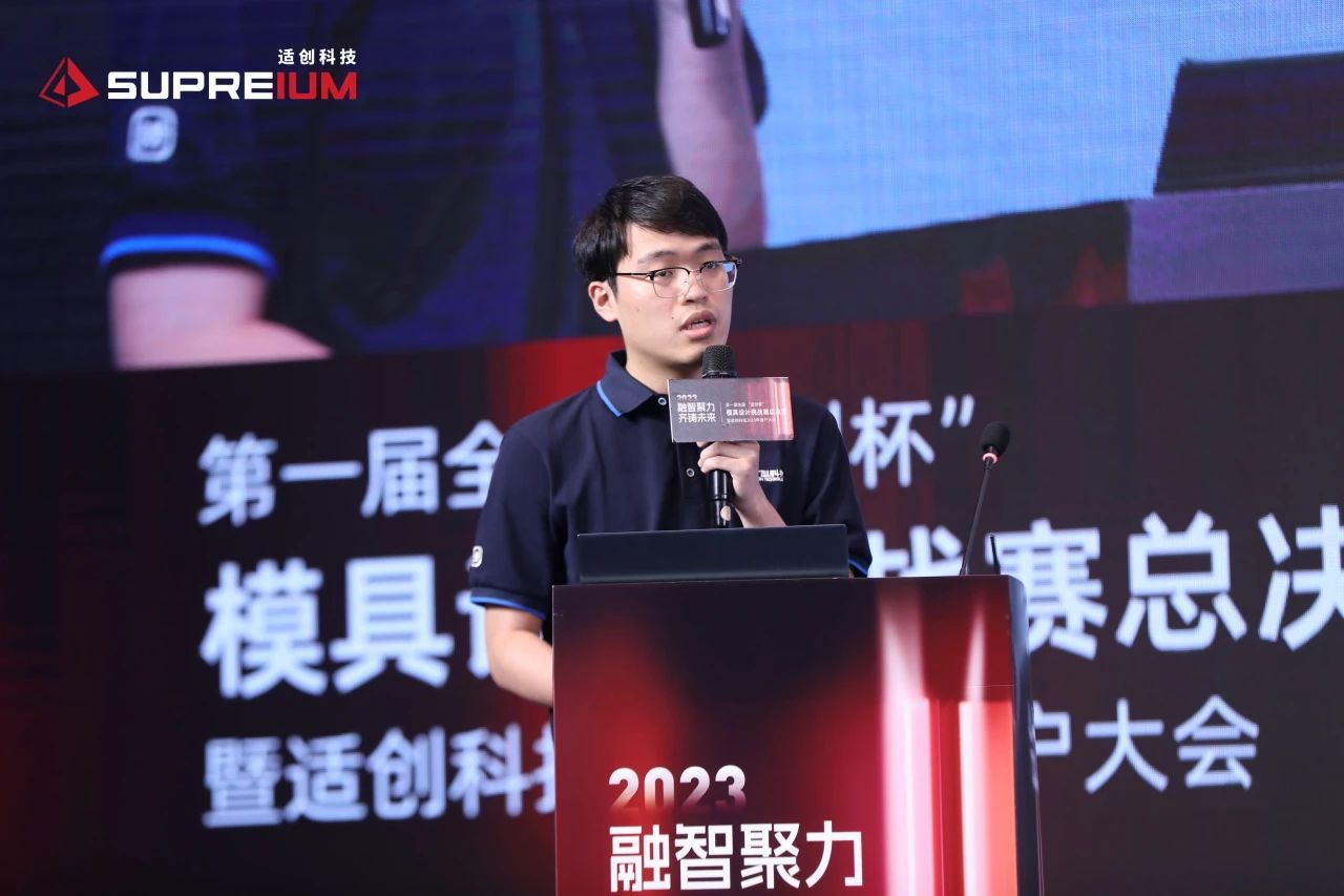 西北工業大學陳豫增教授作了主題為《鋁合金壓鑄模具隨形控溫模芯增材制造》的報告,對壓鑄模具隨形控溫模芯設計及制造進行了深入探討,并結合典型案例展開了深刻分析。 02大連亞明隊獲首屆“適創杯”模具設計大賽年度冠軍 “適創杯”模具設計大賽自開賽以來,就獲得了全行業的矚目,來自全國共150支隊伍報名比賽,而能夠闖入總決賽的選手,都是模具設計領域出類拔萃的團隊,此次模具設計大賽的題目產品雖然不大,但頗有一定難度,十分考驗選手的設計經驗,考驗他們面對復雜設計需求時解決問題的能力,以及借助數字化仿真軟件提升設計效率的能力。 9月1日下午的決賽環節,9位專家評審現場聆聽選手的作品展示并提問答辯。 專家評審